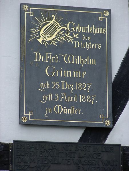 Hier in Assinghausen, heute Ortsteil von Olsberg, hat sich wenig verändert. Die alte Schule, nördlich der Kirche und gegenüber dem Pfarrhaus, sieht noch genauso aus wie zu der Zeit, als Friedrich Wilhelm Grimme (1827-1887) hier geboren wurde. Grimme, der »Dichter des Sauerlandes«, war ein Klassiker des plattdeutschen Schwanks. Er hat jedoch auch in Hochdeutsch geschrieben, etwa seine Kindheitserinnerungen Memoiren eines Dorfjungen (1864) und den Band Das Sauerland und seine Bewohner (1866), mit dem er dem Sauerland ein literarisches Denkmal setzte.