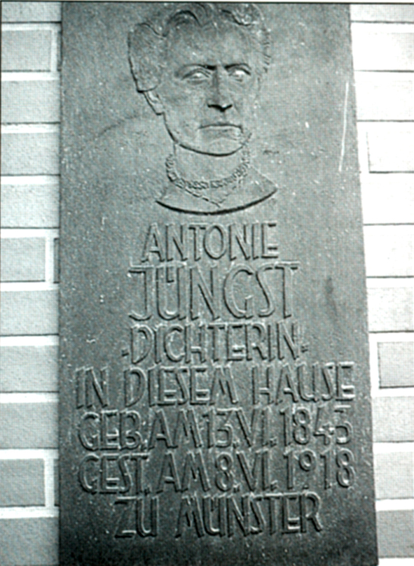 In Werne wurde Antonie Jüngst (*1843 – †1918 Münster), eine katholische Schriftstellerin und Verfasserin historischer Versepen, geboren. Nach dem frühen Tod ihrer Mutter mußte sie zu Pflegeeltern nach Rheine übersiedeln. Diese machten sie mit Christoph Bernhard Schlüter (s. Warendorf, Münster) bekannt, mit dem sie eine zwanzigjährige Freundschaft verband. Er wurde ihr geistiger Mentor. Ihr bekanntestes Werk war das Versepos Conradin der Hohenstaufe (Paderborn 1882).